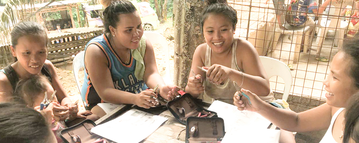セブ島の貧困家庭で仕事を探している女性達に技術指導を行い製造販売を通し